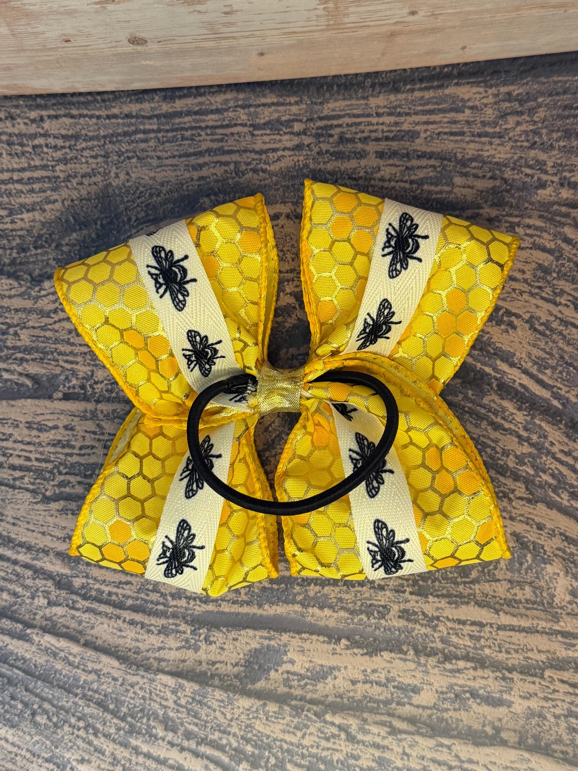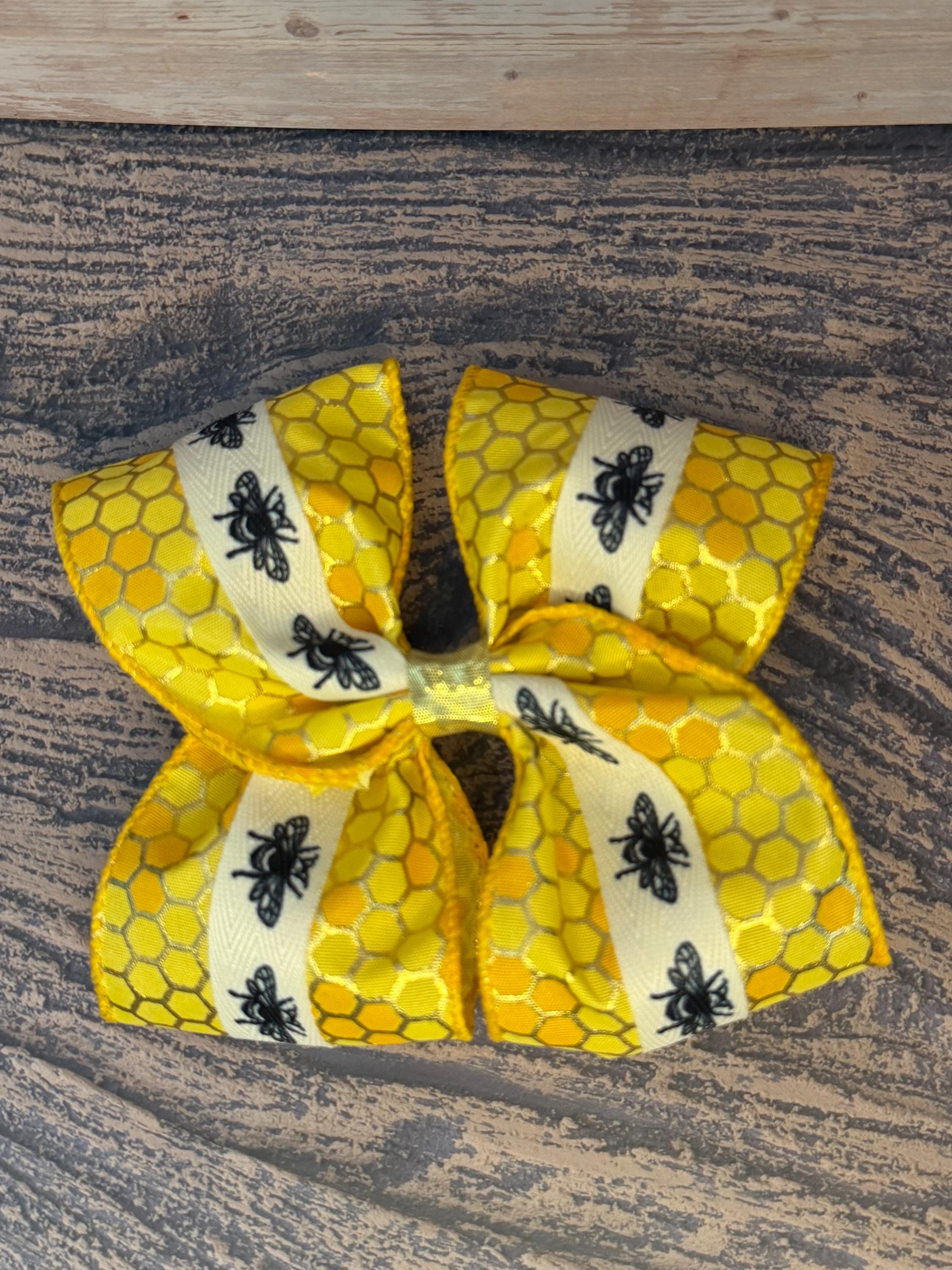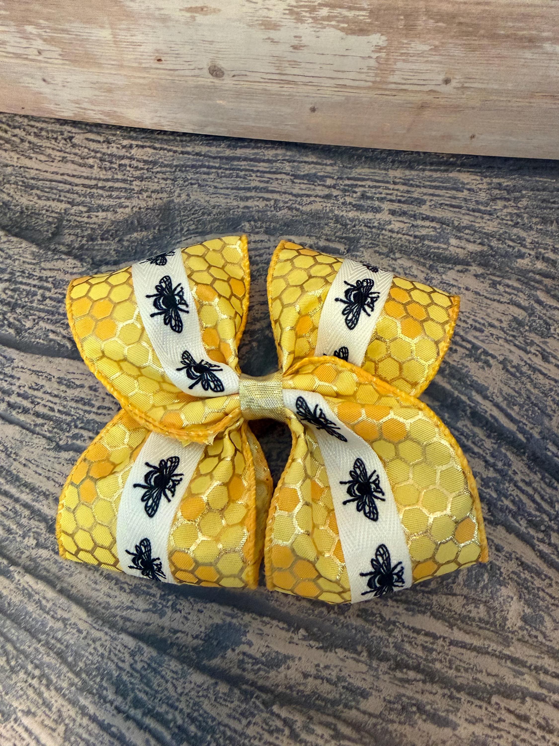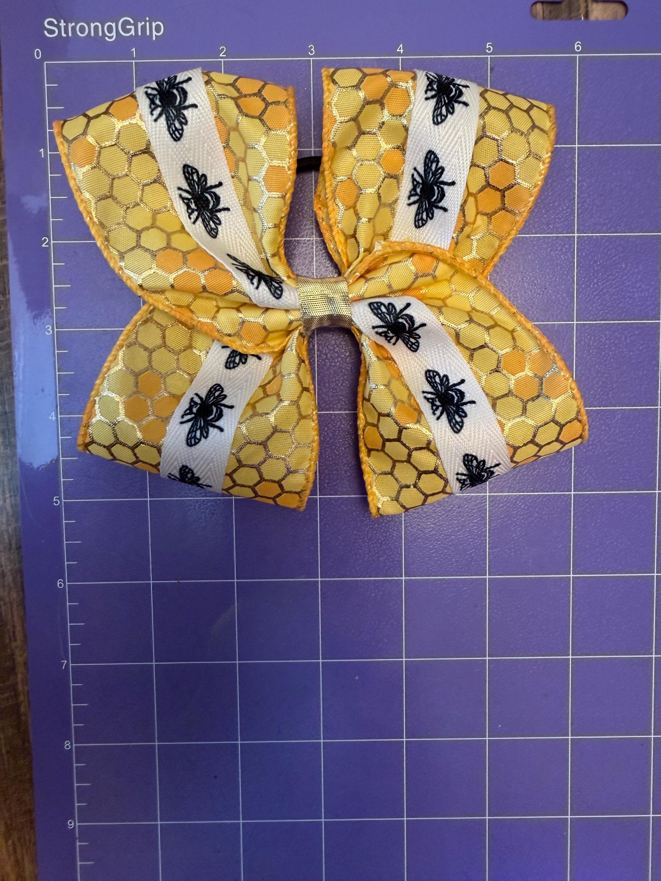 ✨ Details: • Handmade with premium honeycomb + bee print ribbon • Full, layered boutique bow style • Approximately 5-6 inches wide • Perfect for everyday wear, photo outfits, spring/summer looks, gifts & more