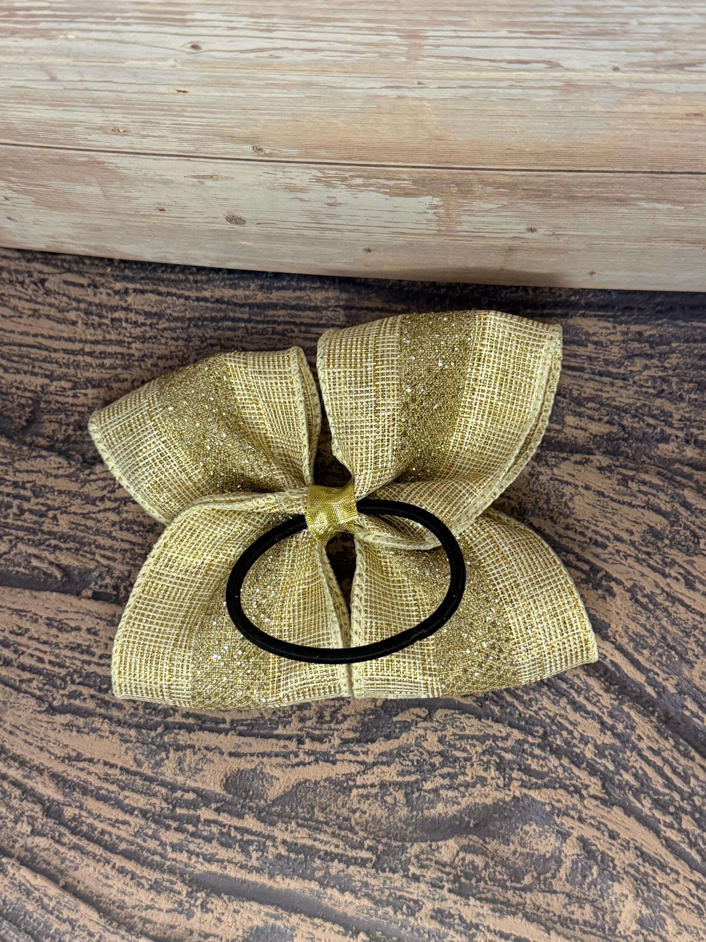• Hand-tied gold glitter ribbon with structured wire edges • Strong black elastic for secure, gentle hold • Sparkly, elegant finish—perfect for the holidays • Lightweight, comfortable, and durable • Ideal for toddlers, girls, teens, and festive adults!